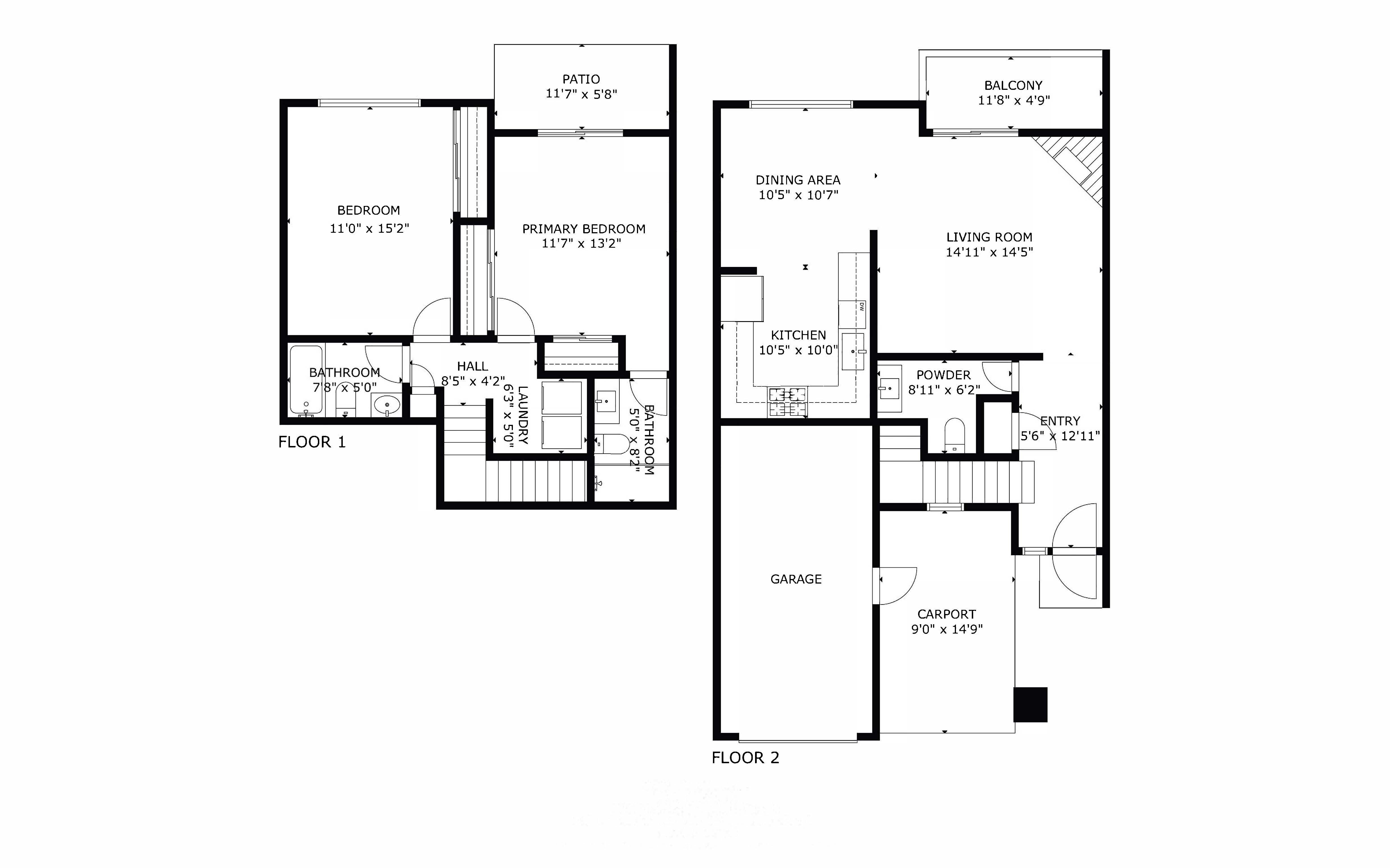 The main level is bright and inviting, featuring a large living room with a cozy fireplace and balcony, flowing seamlessly into the dining area and upgraded kitchen—perfect for everyday living and entertaining. A stylish half bath rounds out the main floor. Downstairs, you’ll find two generously sized bedrooms, each with its own ensuite bathroom, plus a convenient laundry area.