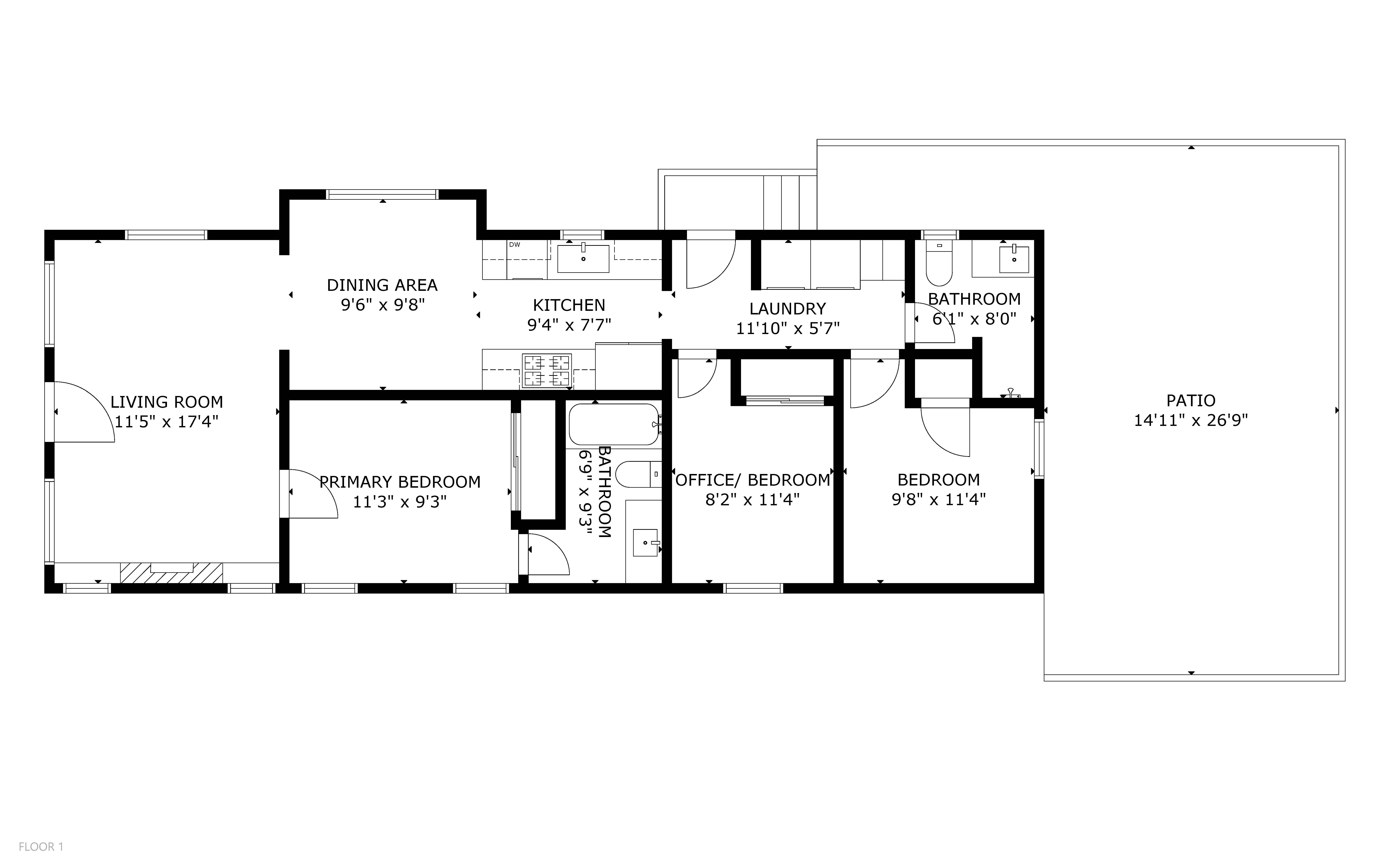The floor plan includes a living room, a separate dining area, 3 bedrooms, 2 baths, and laundry within the home. The upgrades include a fully remodeled kitchen, remodeled baths, central A/C, 200 amp electrical panel, upgraded plumbing, and a pristine foundation. The large backyard is fully fenced and provides ample space for entertaining or parking.
